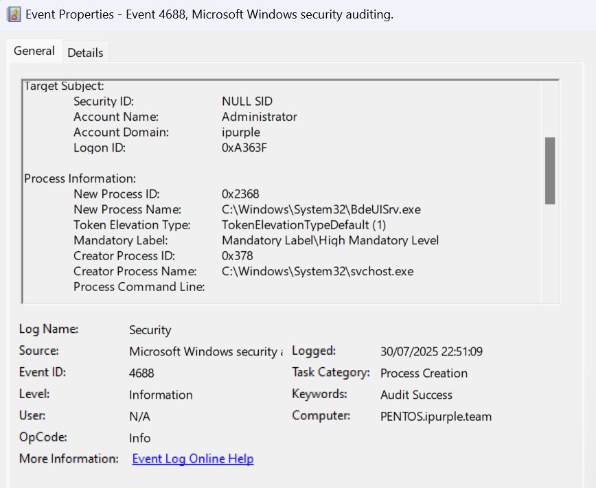 | svchost.exe | BdeUISrv.exe | 4688 |