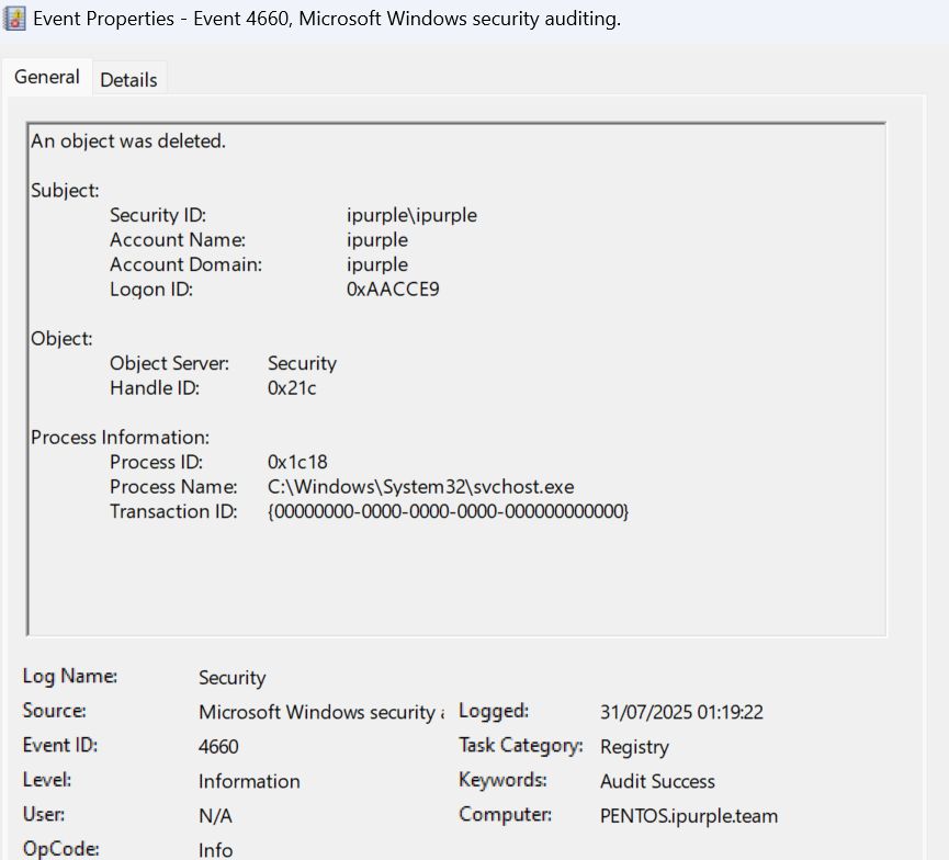 - https://docs.microsoft.com/windows/security/threat-protection/auditing/event-4660
