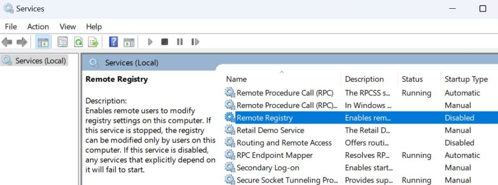 - Administrators manually reconfiguring Remote Registry for remote management.