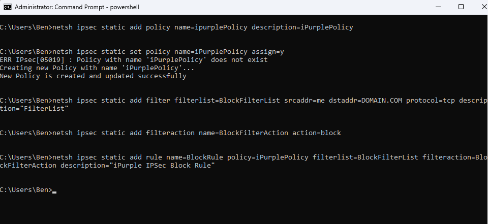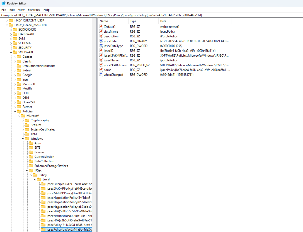 Adding IPSec Filter Rules to block EDR traffic can be performed from the command line by executing the netsh utility. IPSec policy configurations are stored in registry, therefore monitoring the associated key is required to detect arbitrary IPSec filters. SOC teams should enable monitoring for registry changes of the IPSec Policy registry key and subkeys.