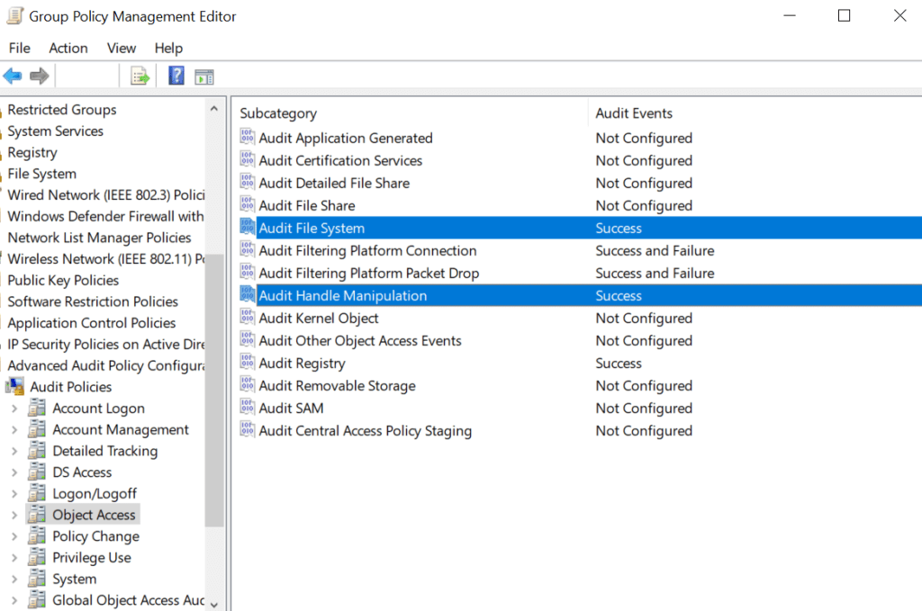 Computer Configuration > Windows Settings > Security Settings > Advanced Audit Policy Configuration > Audit Policies > Object Access > Audit File System