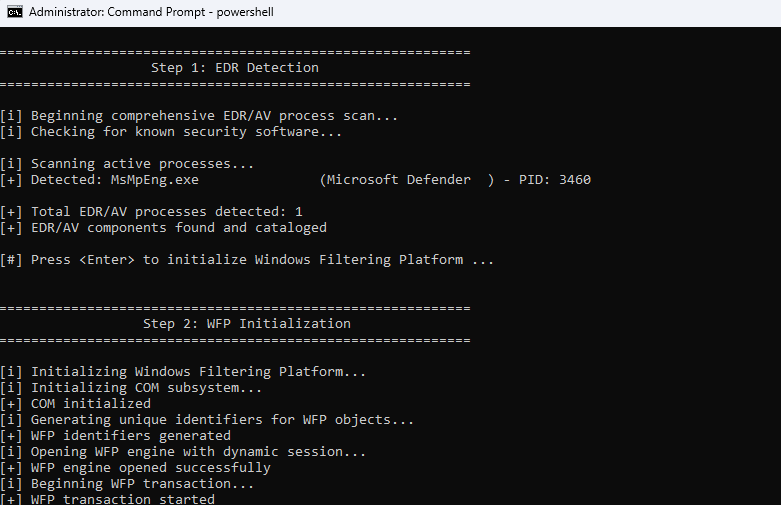 In 2023, MDSec has disclosed to the public that their internal team are taking a different approach to EDR Silencing as opposed to ransomware groups that were using kernel drivers to disrupt EDR communication. Their private tool FireBlock, leverages the Windows Filtering Platform to add rules and prevent egress traffic of the EDR agent. Based on this announcement similar proof of concepts have been developed by the information security community to emulate that behaviour.