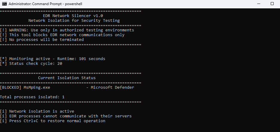 Modern Endpoint Detection and Response systems depend on persistent, bidirectional communication with their cloud management console, enabling them to continuously report suspicious activity and receive updated instructions or response actions. If that communication is disrupted, the EDR continues to collect telemetry locally, but it can no longer generate alerts to the cloud console. Threat actors can abuse the Windows Filtering Platform or modify local name resolution components such as the hosts files to block EDR agent outbound communication. This allows them to blind the EDR cloud visibility without triggering a service crash or process termination. Loss of visibility in the endpoints, constraints the ability of defensive security teams to detect and respond to threats.