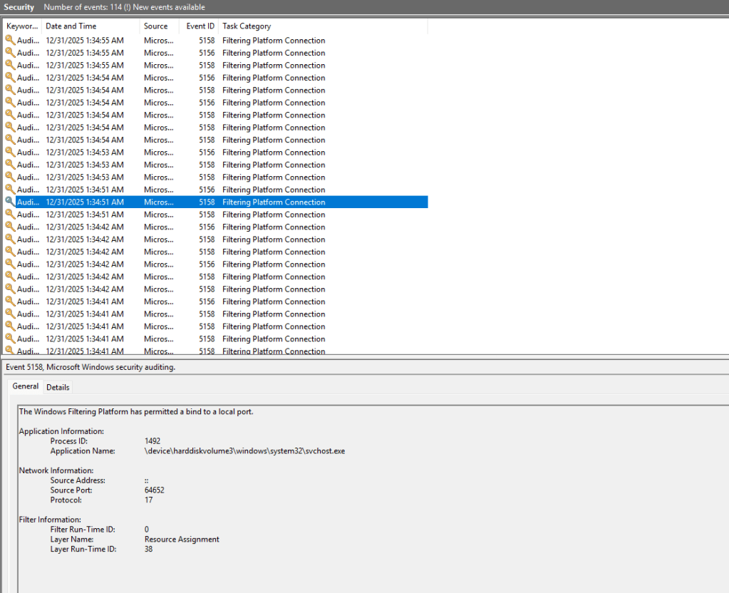 | FwpmFilterAdd0 | 5444 | Windows Events |