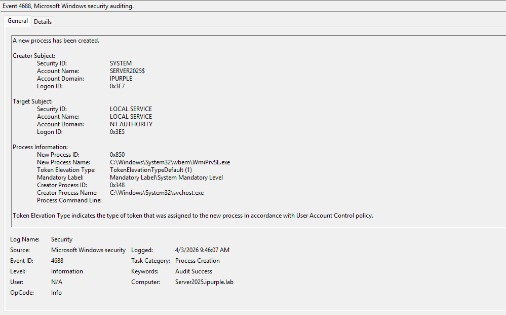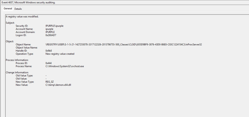 The following three Windows Event IDs are generated upon execution of the technique: