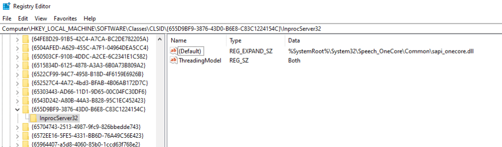 The CLSID {655D9BF9-3876-43D0-B6E8-C83C1224154C} is tied to SpeechRuntime.exe, part of the Windows Speech Runtime subsystem. When SpeechRuntime.exe is instantiated this COM class is loaded and therefore it is prone to COM Hijacking. The tool creates a registry entry to the CLSID {655D9BF9-3876-43D0-B6E8-C83C1224154C} keys and subkeys.