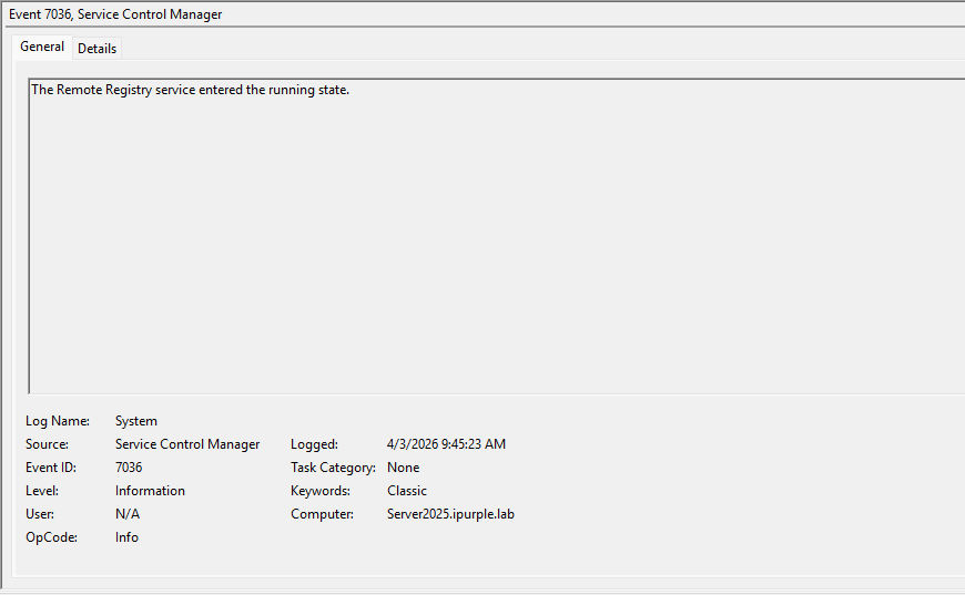 The table below summarizes the Event IDs associated with the status changes of the Remote Registry: