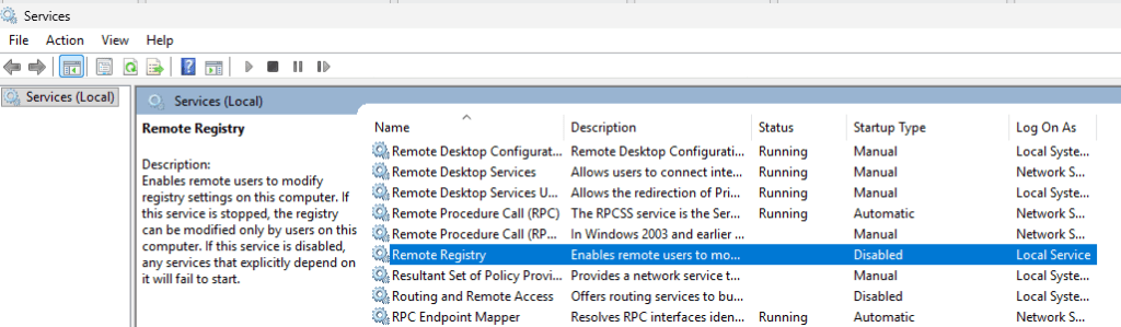 // Get the RemoteRegistry service