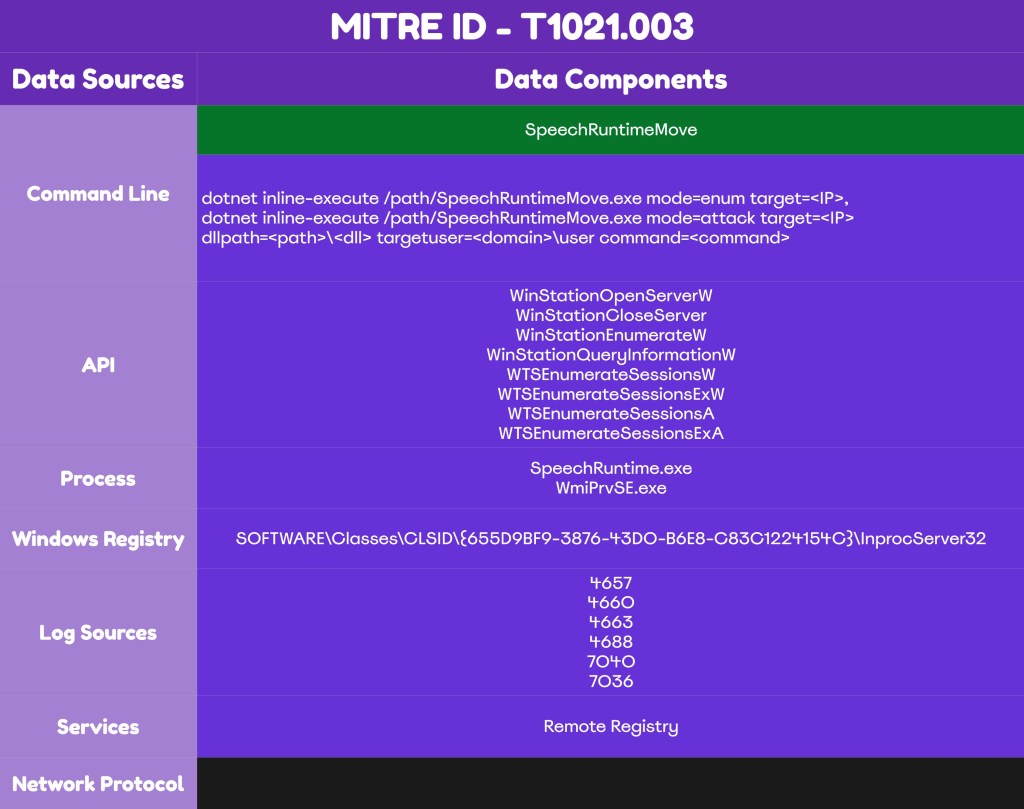 Detection of lateral movement via SpeechRuntime requires sufficient visibility on endpoints and servers. The components used by the proof of concept – APIs, registry keys, the Remote Registry service, and others – offer multiple detection opportunities for organizations. A detection strategy should incorporate multiple data sources, including EDR and Windows Events, to enable SOC teams to detect the technique early.